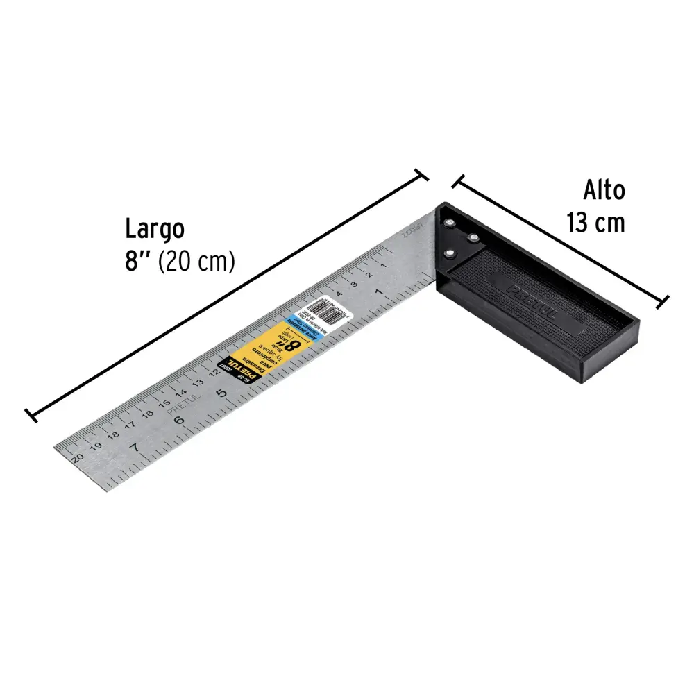 Escuadra 8″ para carpintero, Pretul ✓ Con escala métrica e imperial en la misma pieza ✓ Forma cónica que facilita el llenado y vaciado ► Consigue resultados perfectos al cocinar