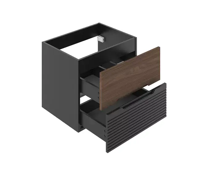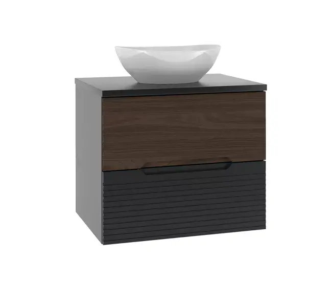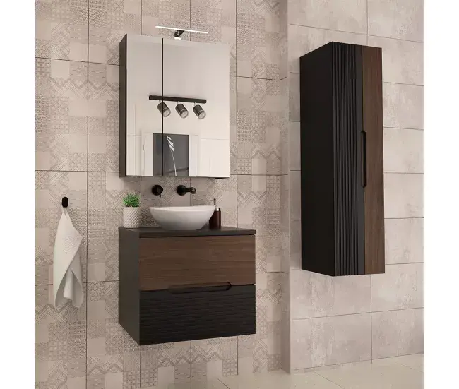 Conjunto de muebles con lavabo individual 60cm y columna Sylla Negro y madera