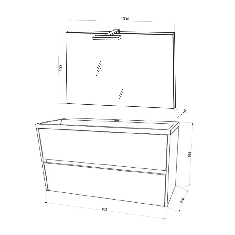 - Tipo: Mueble de baño de suelo con lavabo y espejo