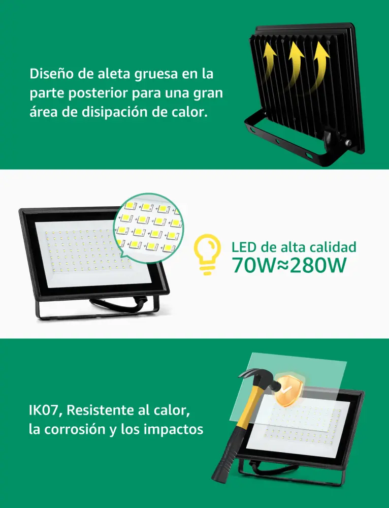 ✔️【súper brillante y de ahorro de energía】el foco led aigostar para exteriores utiliza chips led de alta calidad y la última tecnología smt para ofrecer una iluminación de hasta 6100 lúmenes (70w), equivalente a una bombilla incandescente de 280w, lo que le capacita ahorrar más del 85% en su factura de electricidad.
