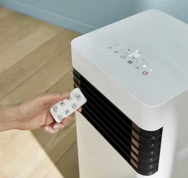 El aparato de aire acondicionado portátil Bodner regula rápida y eficazmente la temperatura de una habitación de hasta 1,2 m². Dispone de funciones de refrigeración, deshumidificación y ventilación, modo nocturno y ventilación con giro automático para un uso fácil.