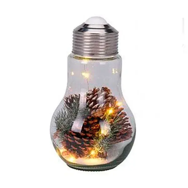 Te resultará muy sencillo satisfacer con estos tres requisitos si adquieres este adorno navideño con forma de bombilla de gran tamaño. Tiene 31 cm de altura y captará la atención de todas las personas que visiten tu casa por abarcar decoración navideña en su interior. En este caso, un suritido de piñas nevadas con pequeñas ramas de pino alrededor. Un conjunto de elementos que, sin duda, propiciará la entrada de los buenos deseos y que aparecerán resaltados con 10 luces LED de color blanco cálida.
