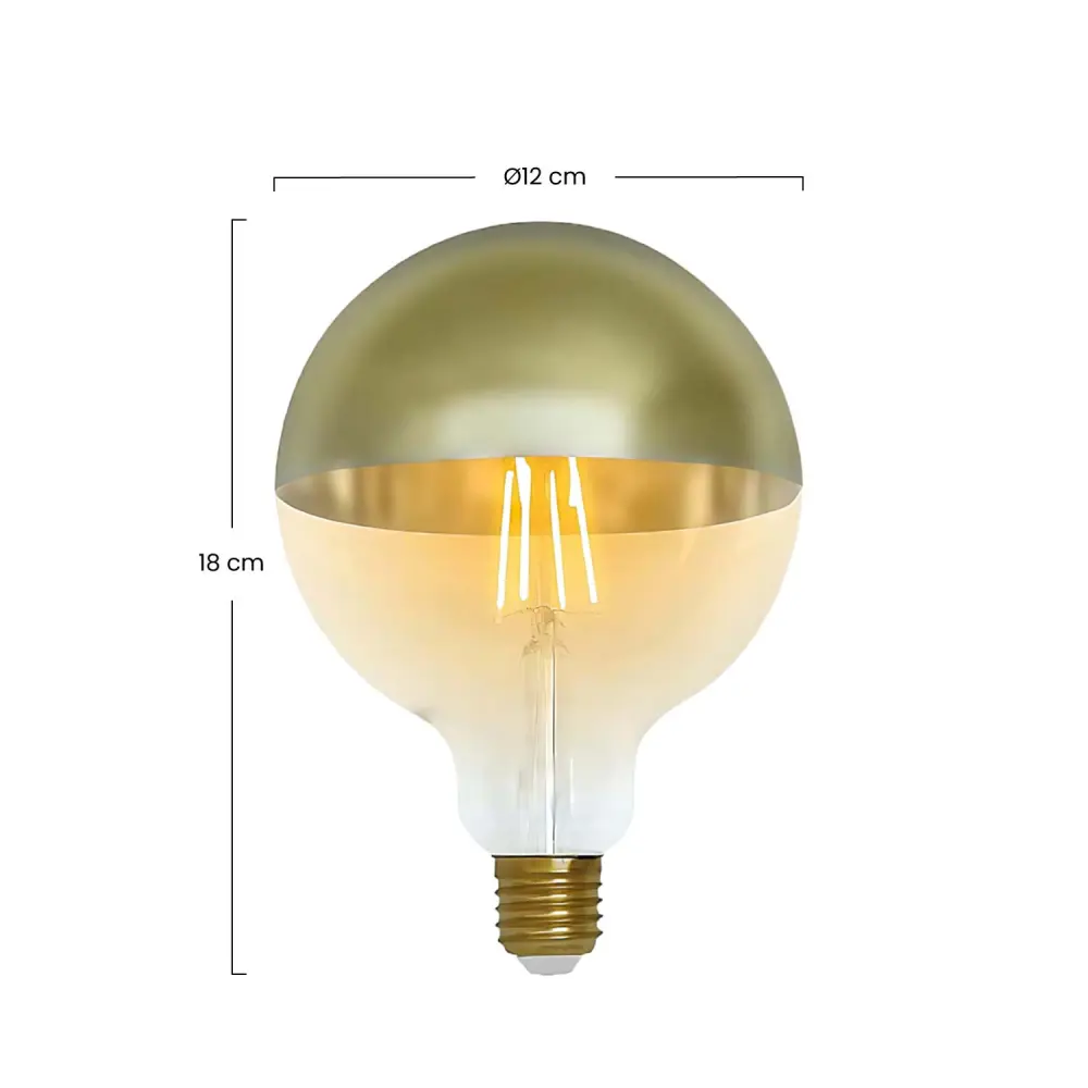 Bombilla led globo g120 decorativa e27 de 7hsevenon retro, ilumina las estancias con una pieza de última tendencia. Perfecto para decorar espacios interiores como salones, dormitorios, cocinas o recibidores. Dale un toque chic a tu negocio y colócala incluso en tu restaurante, cafetería, hotel o comercio. La pongas donde la pongas, se transformará en el centro de todas las miradas.fabricada en cristal con un elegante acabado color oro. Esta bombilla decorativa con forma de globo fabricará ambientes íntimos gracias a la luz blanca cálida que desprende. Si buscas darle un toque más personal, puedes combinarla con un pendel portalámparas, ¡quedará perfecta! Su amplio difusor dispersa la luz de manera homogénea y evita los deslumbramientos. Además, disfruta de un índice de reproducción cromática superior al 80% gracias a sus diodos de última generación. Equipada con un ángulo de apertura de 350º, 6w de potencia, 600 lúmenes de flujo luminoso, casquillo e27 y hasta 15.000 horas de vida út