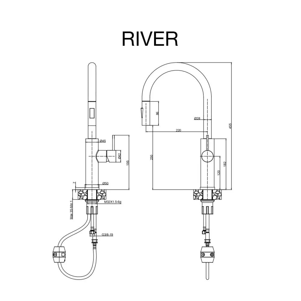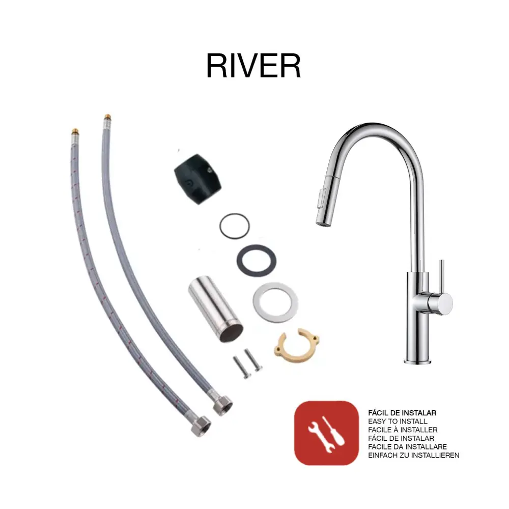 Grifo de cocina monomando caño grande extraíble SKY BATH – Série RIVER.