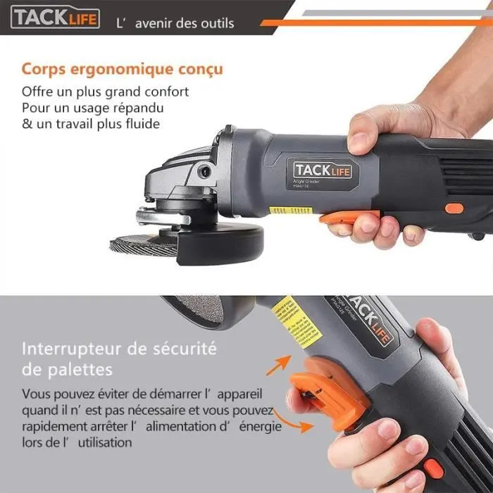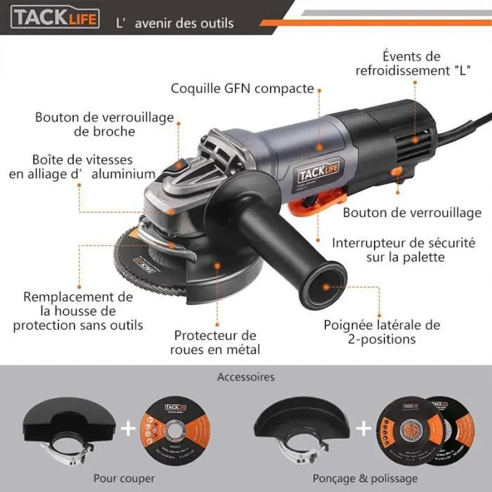 La amoladora angular TACKLIFE es una potente herramienta profesional con motor de 1300W y 12.000 rpm para aplicaciones de corte y desbaste. Tiene un interruptor de paleta conveniente y seguro, así como un botón de bloqueo de liberación rápida para adaptar la cubierta protectora de forma independiente.Especificaciones