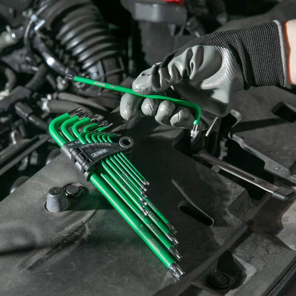 El juego de llaves de estrella de brazo extralargo de ARES le facilita las llaves que necesita para casi cualquier aplicación de brocas de estrella, incluso las empotradas. La broca de estrella regular tiene 1 pulgada de largo, pero la más corta de estas llaves de estrella tiene 2,77 pulgadas de largo, y la longitud adicional en realidad proporciona más torsión además de alcance adicional. Fabricadas con acero S2, el acabado texturizado de alta visibilidad evita que se resbalen durante el uso. Ya sea que esté trabajando en dispositivos electrónicos u otras aplicaciones de brocas de estrella empotradas, estas llaves extralargas harán el trabajo.