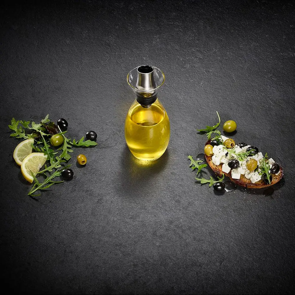 With a capacity of 400 ml , this is a very versatile oil cruet that you can use perfectly both when cooking and for dressing your recipes directly at the table. In addition, thanks to its anti-drip system , this beautiful oil bottle prevents annoying stains on the table or countertop. You won’t