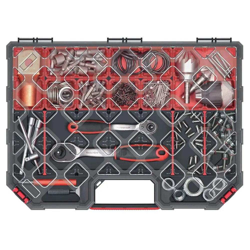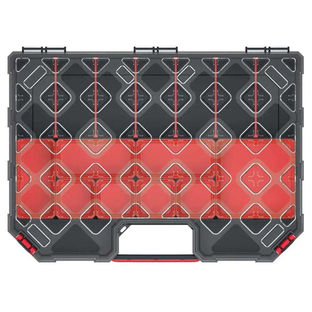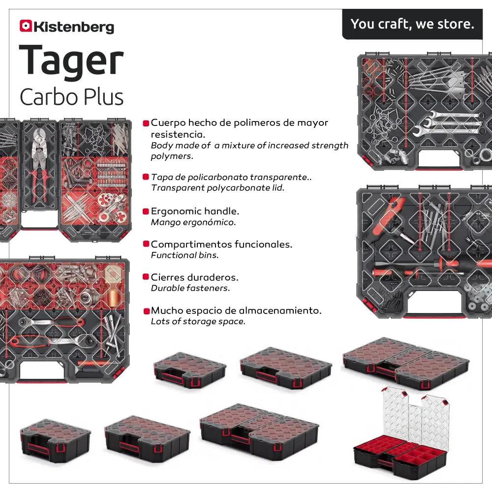 Organizador multifuncional TAGER:– Cuerpo creado en una mezcla de polímeros de mayor resistencia.– Mango ergonómico.– Tapa de policarbonato transparente.– Papeleras y mamparas funcionales.– Sujetadores duraderos.– Mucho espacio de almacenamiento.Especificaciones
