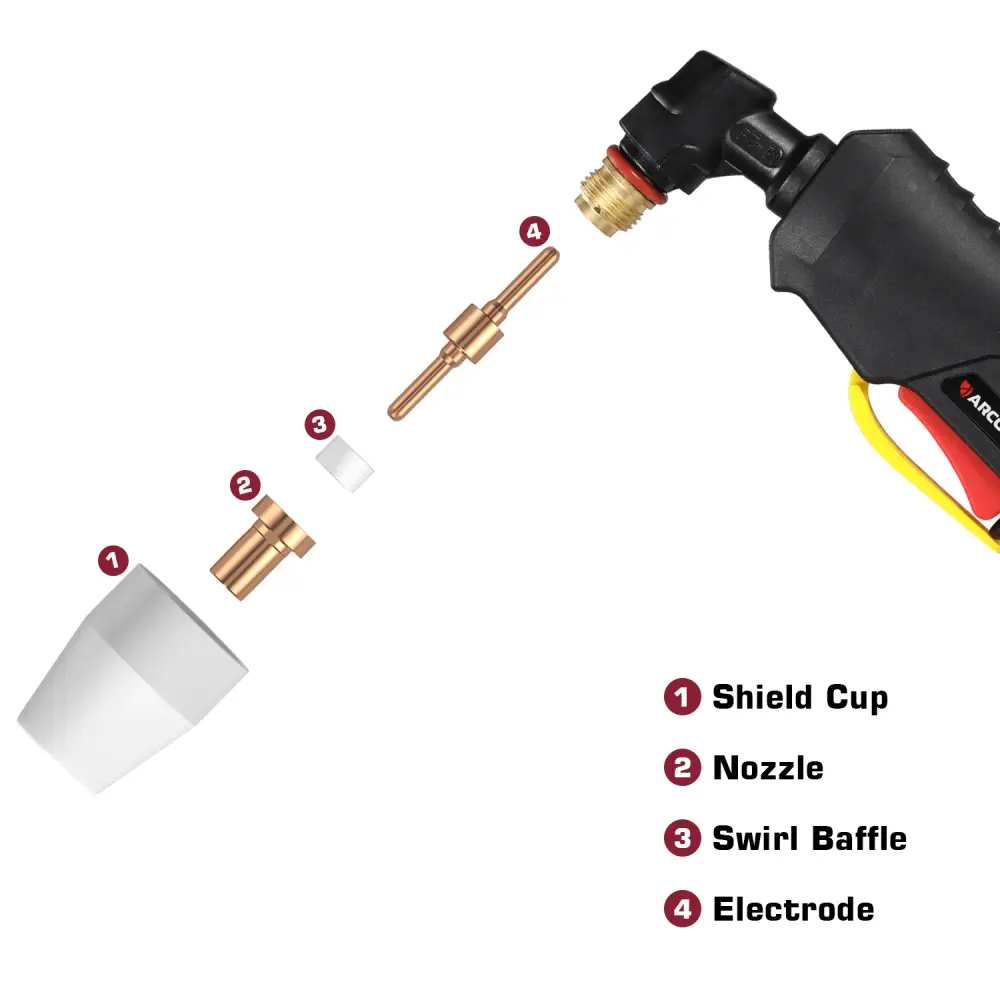 5. Paquete completo : Incluye 1 pistola de corte por plasma PT31 con cable de 4 m, boquilla, electrodo y copa protectora preinstalados para uso inmediato.