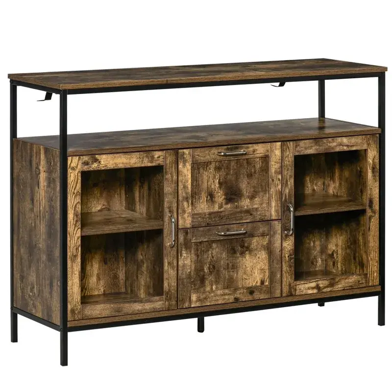Aparador Homcom 2 puertas+2 cajones marrón/negro ✔ 2 Años de Garantía Incluidos ✔ 1 Año de Garantía del Fabricante 🛒 Reserva el tuyo