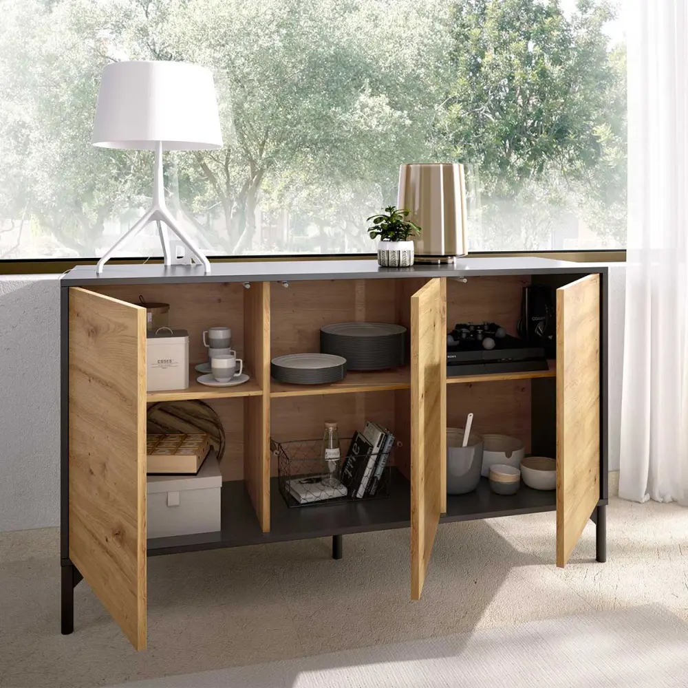 Aparador Lak 3 puertas grafito/Nordic