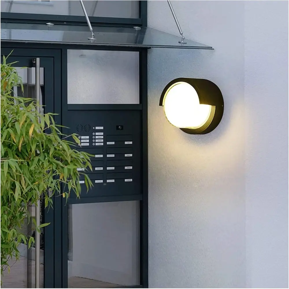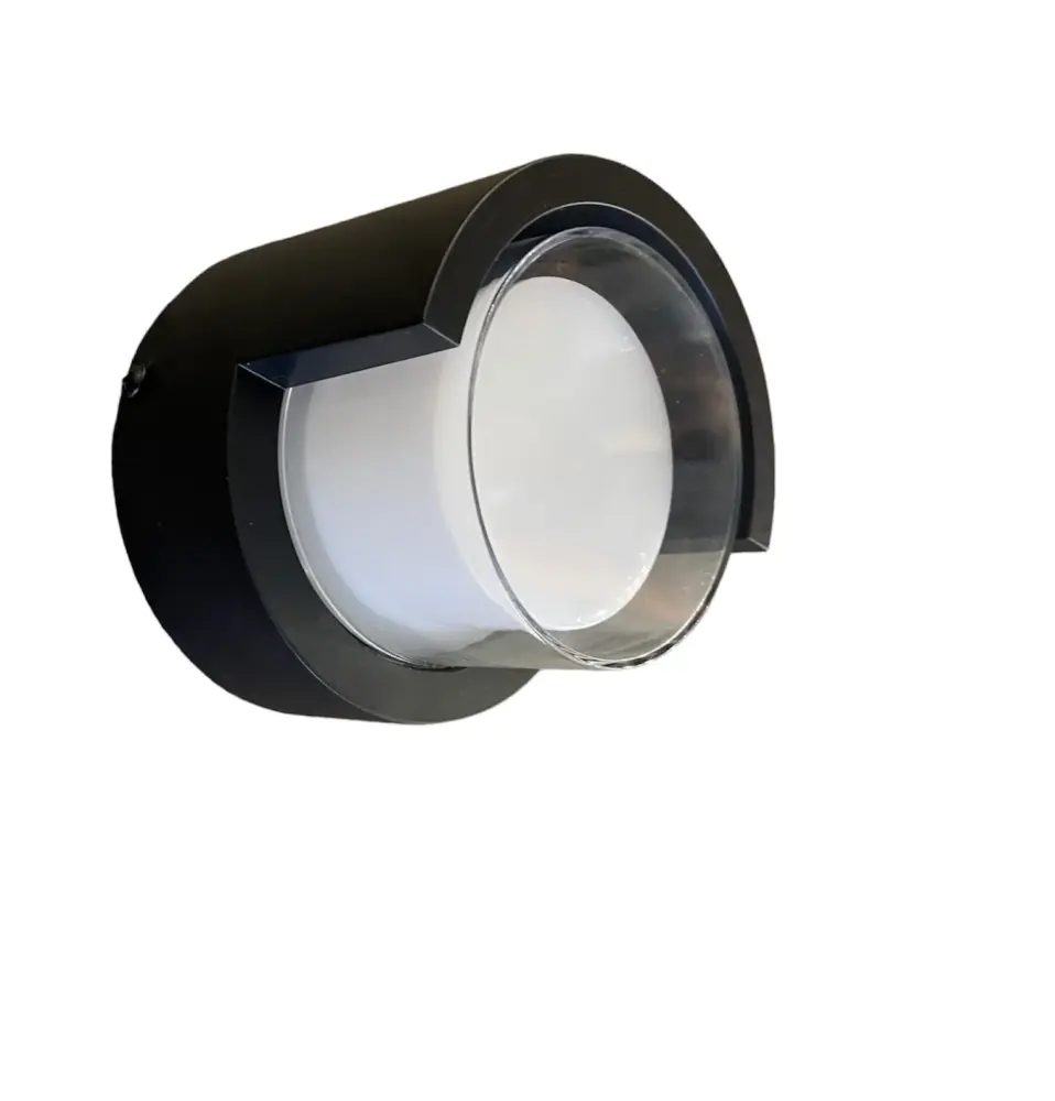 APLIQUE DE MURO Y TECHO EXTERIOR REDONDO LUZ LED CALIDO ● Ángulo ajustable para dirigir la luz ● Difusor de plástico opaco para luz suave ▶ Consigue una iluminación ambiental perfecta