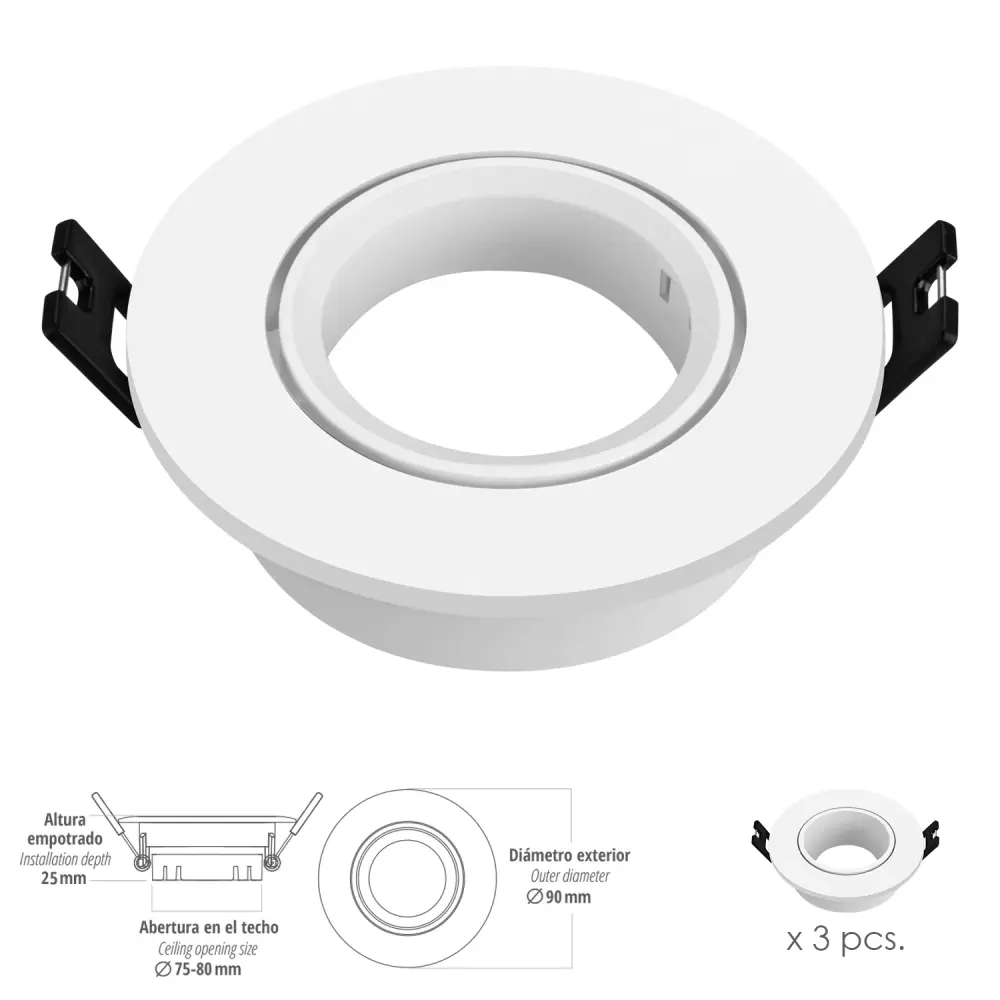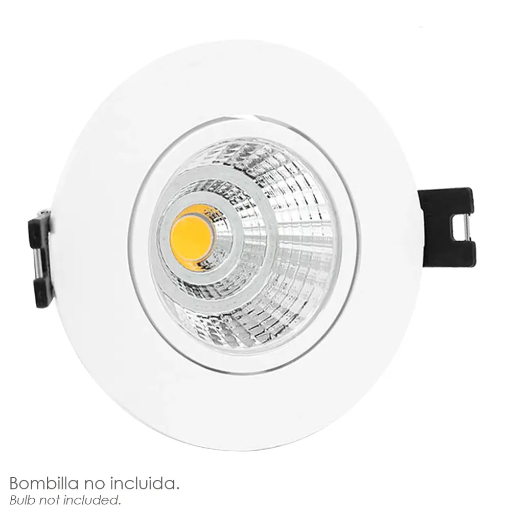 Aro Foco Empotrable Regulable Con Portalamparas Para Bombillas Ø . ● Conectores de seguridad que evitan cortocircuitos por humedad ● Formas geométricas que crean patrones de luz decorativos ▶ Ilumina tu techo con estilo