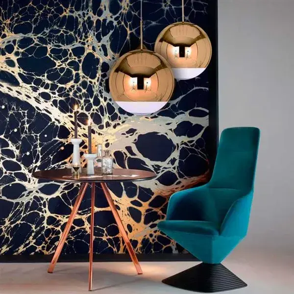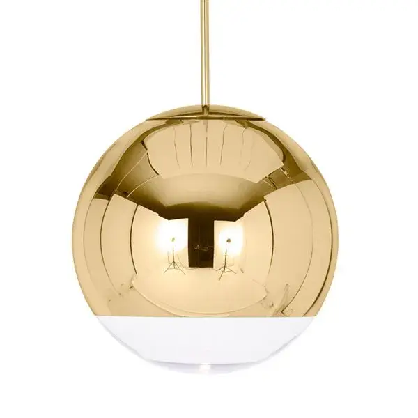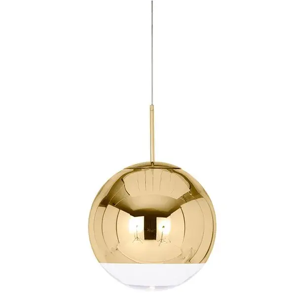 La lámpara de diseño exclusivo modelo Cooper Ball es el elemento decorativo perfecto para aportar un extra de elegancia y sofisticación a cualquier estancia de tu hogar. Su tulipa está realizada en cristal espejo de color dorado y su acabado inferior en cristal transparente deja pasar la luz. El portalámparas es de casquillo E27 y la bombilla no está incluida. Mide 40 centímetros de diámetro y podrás fabricar un lujoso ambiente combinando varias y colocándolas a distintas alturas, por ejemplo, para aportar un aire más caluroso sobre la mesa de comedor o para focalizar la atención sobre otro elemento decorativo de tu hogar. No te lo pienses más y hazte ya con esta exclusiva lámpara.