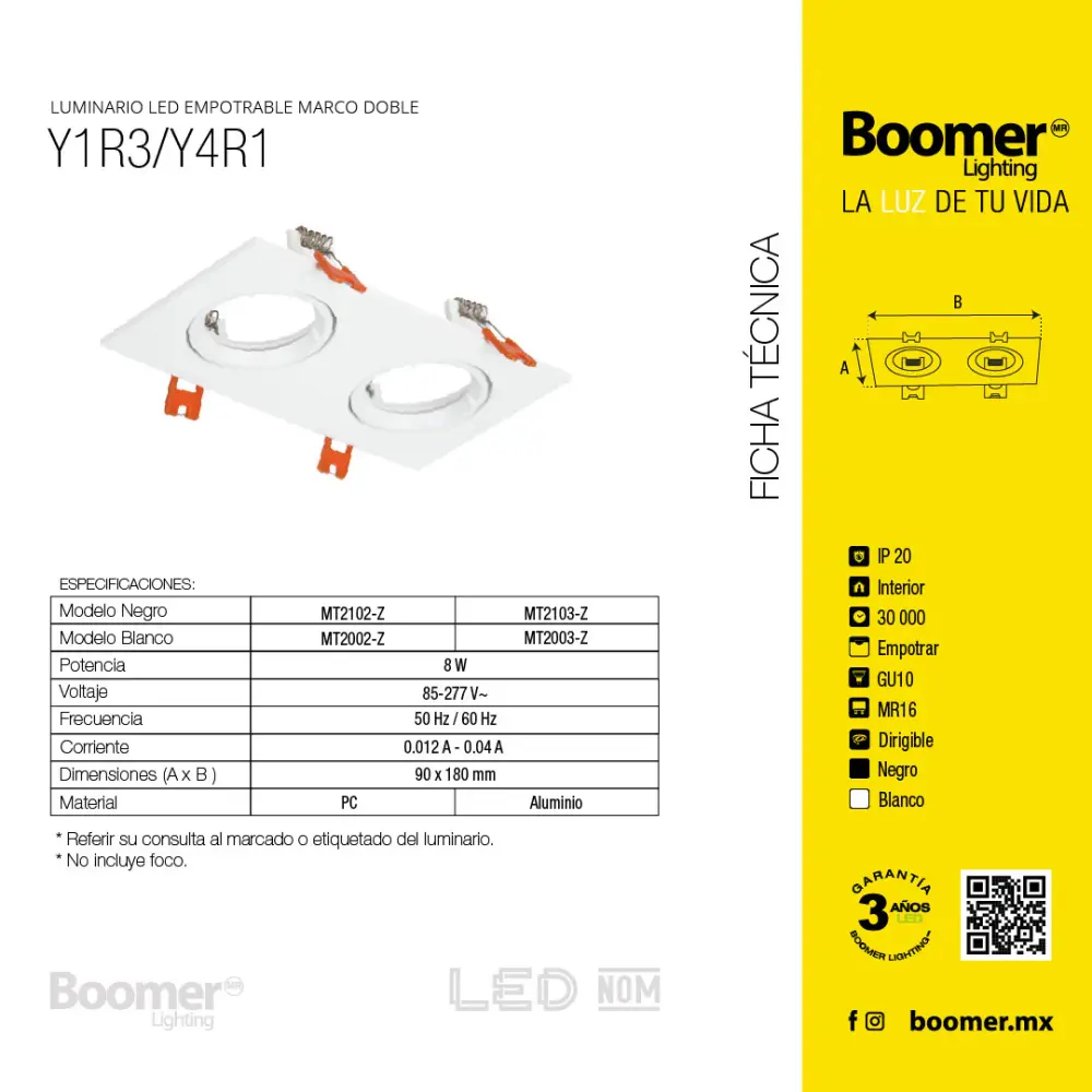 - Compatible con focos MR16, fácil de reemplazar