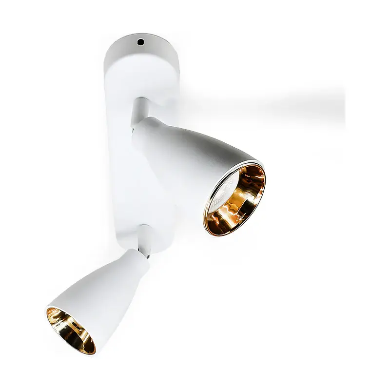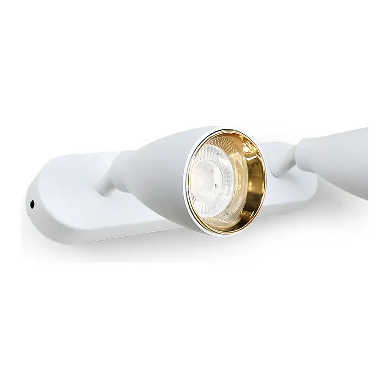 APLIQUE 2 LUCES BLANCO DORADO PARED-TECHO -Modelo: LH-3856 -Color: blanco y dorado -Material: Metal Medidas -Base en pared: largo 27cm x Ancho 6cm x Profundidad 3cm -Distancia de pared a luz: 17cm Se adapta a con Lámpara Dicroica (código 1468) NO INCLUIDA . Luminaria exterior pared lampara exterior foco exterior aplique exterior luminaria pared lampara pared aplique pared foco pared