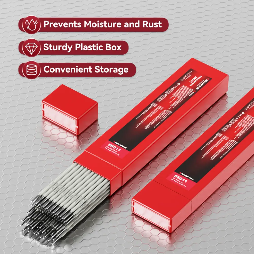 Strong Arc with Deep Penetration: Low carbon 6011 electrode offers powerful arc force and outstanding penetration — idóneo for medium-thick steel.