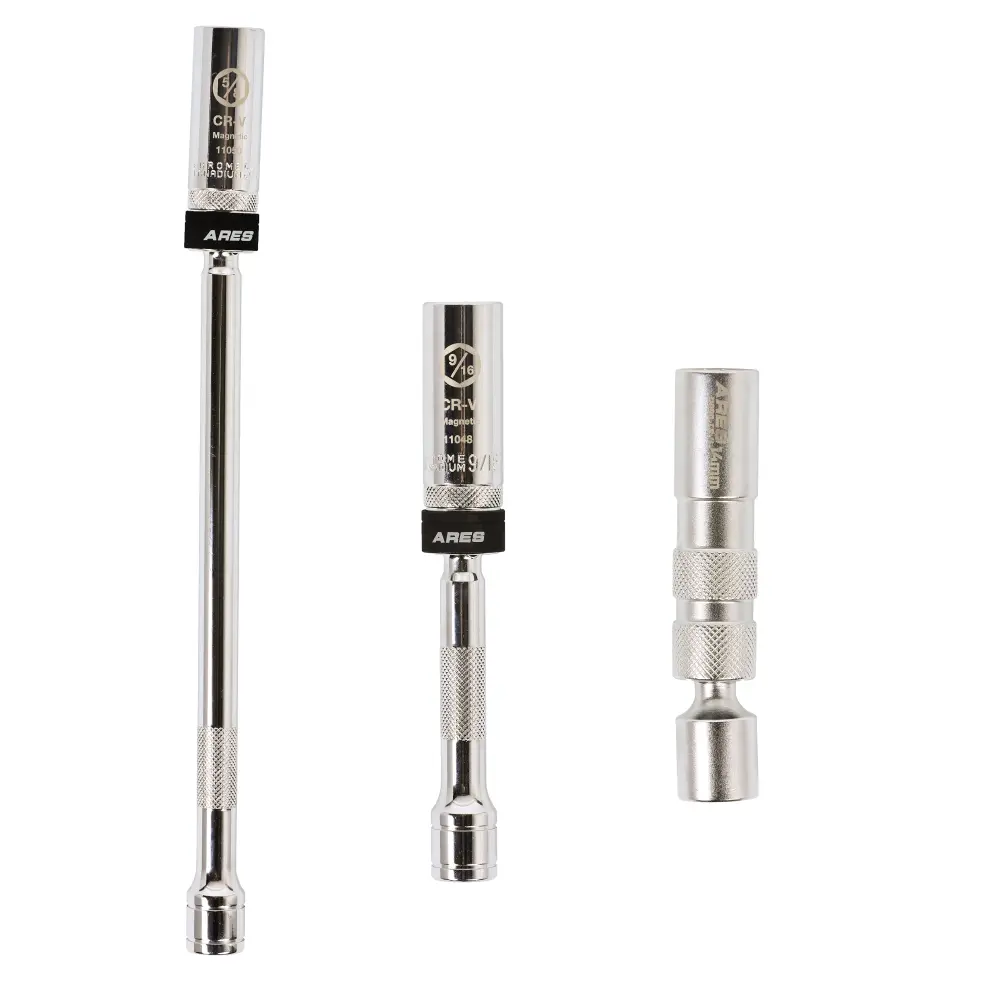 ARES – Juego de 3 vasos magnéticos giratorios para bujías ✓ Material de acero al cromo vanadio templado ✓ Resistencia a la corrosión con recubrimiento de cromo mate ► Herramientas duraderas para trabajos exigentes