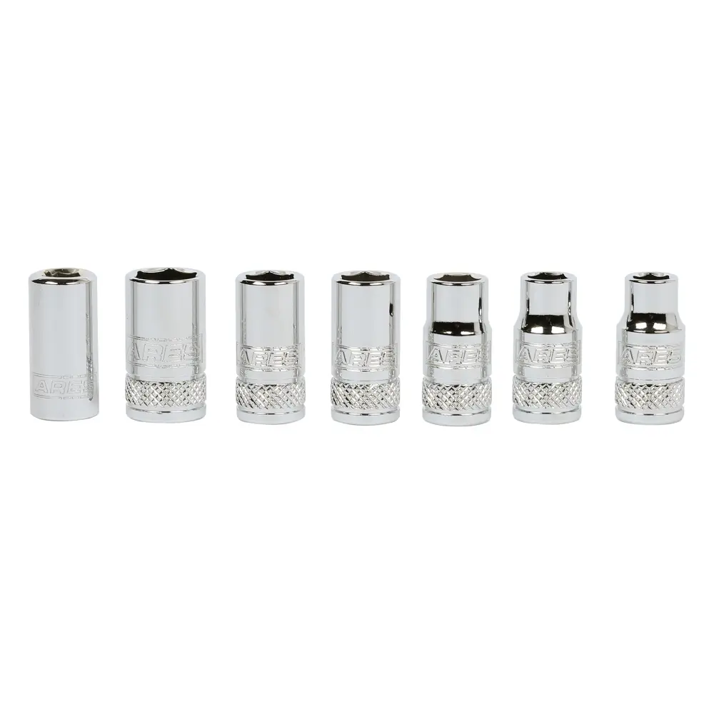 El juego de destornilladores flexibles multiusos ARES incluye un destornillador flexible de 10,65 pulgadas, 12 puntas de 1 pulgada de largo, 6 dados con entrada de 1/4 de pulgada y un acoplador hexagonal de 1/4 de pulgada a entrada de 1/4 de pulgada, lo que ofrece una amplia cobertura de tamaño y estilo para una variedad de trabajos comunes. Cada dado de este juego cuenta con marcas de tamaño estampadas para una fácil lectura y está fabricado con acero al cromo vanadio de primera calidad y cromado para una durabilidad superior y resistencia a la corrosión. Además, el eje flexible del destornillador se dobla hasta 90 grados, lo que posibilita un simple acceso a espacios abarrotados y obstruidos, lo que lo convierte en el juego ideal para proyectos domésticos, servicio automotriz, trabajo mecánico y más.
