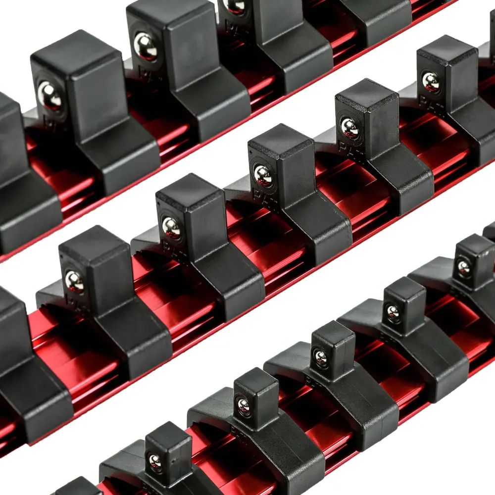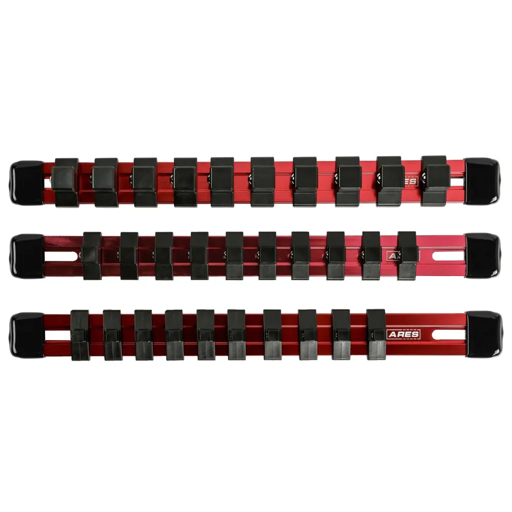 Este juego de organizador de dados de 9,84 pulgadas de ARES viene con un riel de accionamiento de 1/4 de pulgada, uno de 3/8 de pulgada y uno de 1/2 pulgada que le permiten almacenar hasta 10 dados para su mejor juego de dados de viaje organizado. Hechos de aluminio extruido, estos rieles de 9,84 pulgadas de largo admiten clips patentados de ARES que se deslizan fácilmente, por lo que puede acceder aceleradamente al dado que necesita, pero no se caerá. Las bolas de retención con resorte sostienen firmemente los dados en su lugar, incluso boca abajo, por lo que nunca tendrá que preocuparse por perder uno. Además, los clips de ARES son intercambiables, por lo que no importa qué riel esté usando, puede mezclar y combinar sus dados para crear el juego perfecto.