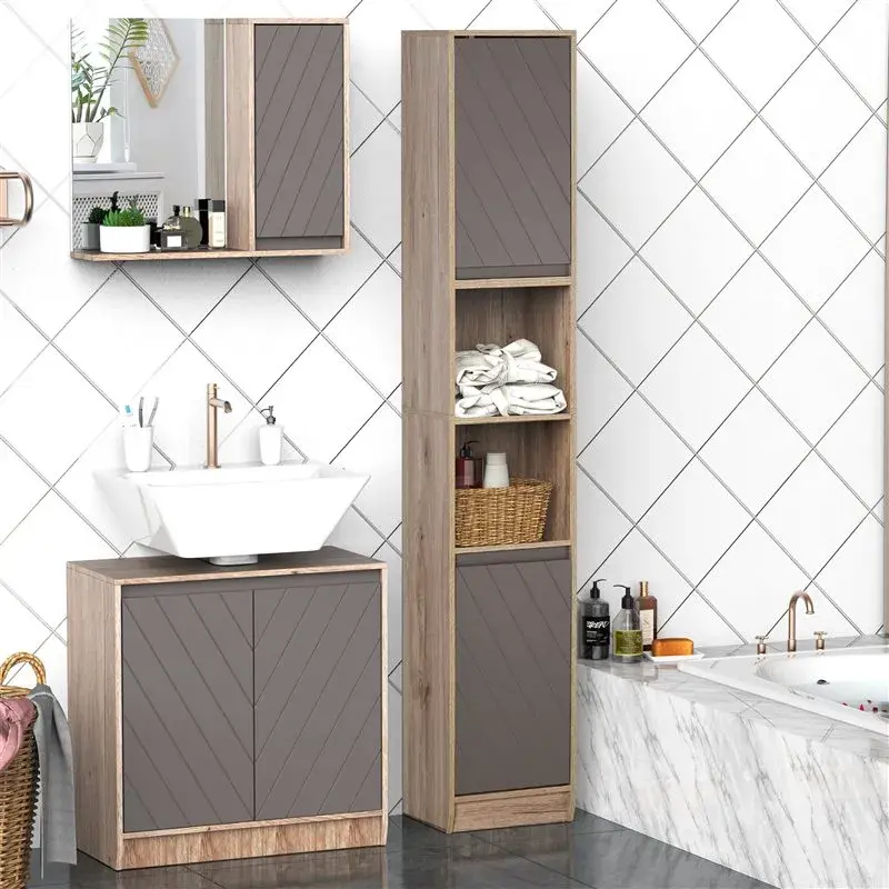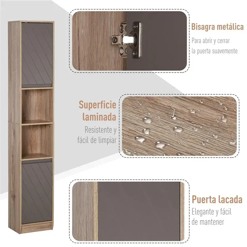 El armario esbelto para baño de la marca Homcom es ideal para expandir el espacio de almacenaje en tu baño y sostener organizados tus productos de belleza, higiene, toallas, papel higiénico, etc. Está fabricado en MDF laminado, resistente y de sencillo mantenimiento y está compuesto por 2 huecos abiertos y 2 armarios con estante ajustable en su interior. Además, arriba con sistema antivuelco para garantizar una mayor estabilidad y resistencia. Combinará sencillomente gracias a su acabado en color natural y gris.
