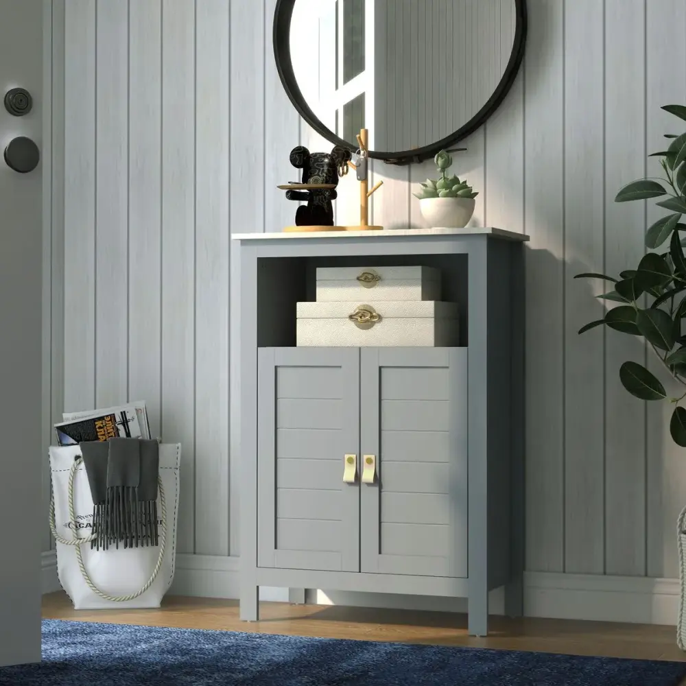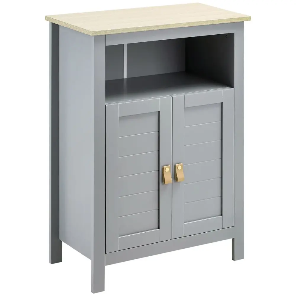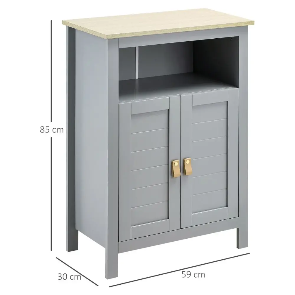 Optimizar el espacio en tu hogar se ha vuelto más intuitivo conel armario auxiliar Velmar de Kleankin. Este mueble no solo ofrecefuncionalidad, sino que también añade un toque de elegancia y modernidad acualquier ambiente. Con su diseño atractivo en tonos de gris y madera, líneashorizontales y detalles en cuero sintético, este armario es una pieza versátilque se adapta perfectamente a tu baño, recibidor u otros espacios de tu hogar. Fabricadoen MDF laminado, el armario Velmar es resistente y sencillo de limpiar,garantizando una larga durabilidad. Con una encimera espaciosa, un estanteabierto y un armario con dos puertas y una balda interior ajustable, ofrece unamplio espacio de almacenamiento para tus necesidades diarias. Además, sudispositivo antivuelco proporciona estabilidad y seguridad adicionales. Con loselegantes tiradores de cuero sintético, abrir y cerrar las puertas del armarioes práctico y cómodo. Este mueble no solo es funcional, sino que también es unapieza de decoraci