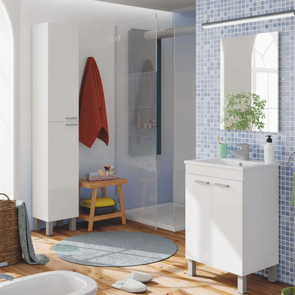 · El armario de baño Levis con acabado color blanco brillo es un mueble fabricado en melamina de alta calidad y durabilidad. Se trata de un producto certificado por la PEFC (Asociación Española para la Sostenibilidad Forestal).