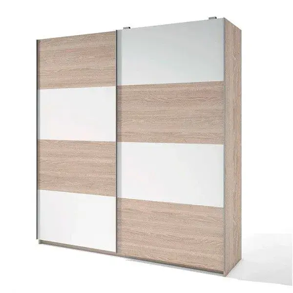Disponer de un armario cuyas puertas sean correderas supone un crucial ahorro de espacio, sobre todo, cuando nos encontramos ante apartamentos pequeños o habitaciones no muy amplias en las que es primordial sostener hasta el novedoso centímetro cuadrado. Si este es tu caso, el armario en color blanco y sable es perfecto para tu dormitorio, ya no sólo por las dos puertas correderas que posee, sino también por el color tan perfectamente combinable con todo tipo de mobiliario.