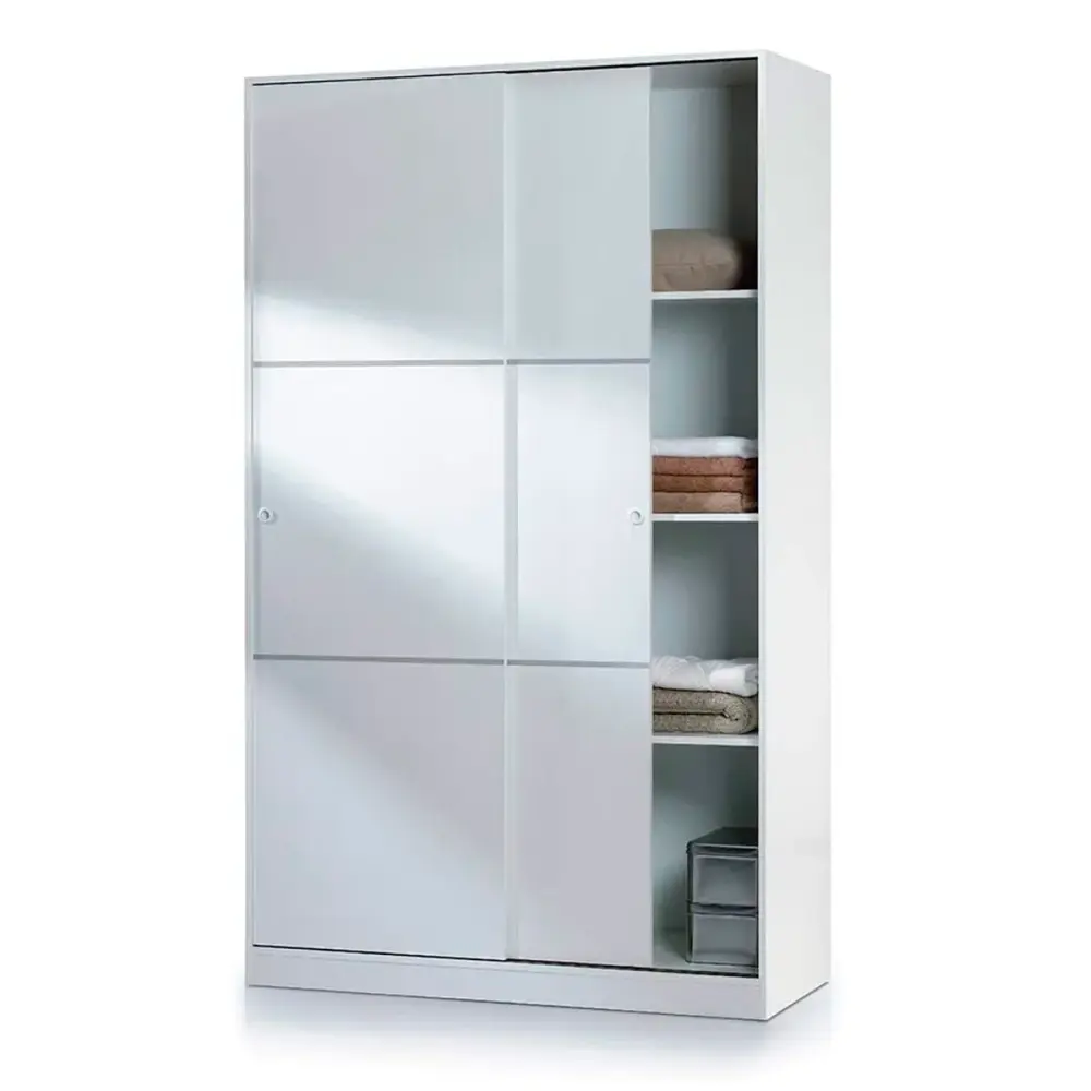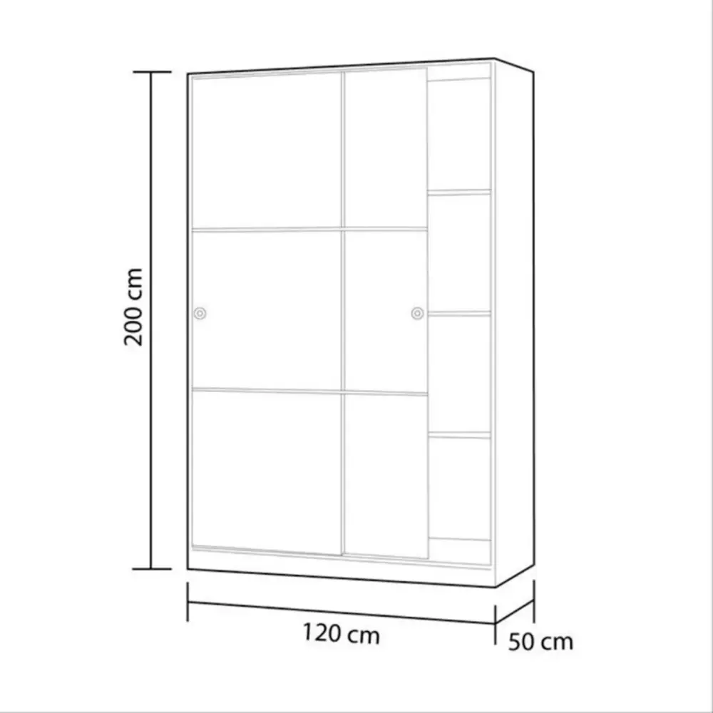 Armario para tuhabitación con puertas correderas en color blanco brillo. Este armario estádividido en dos partes: la parte derecha contiene baldas, para prepararte turopa doblada y la parte izquierda, un amplio hueco para tener tu ropa colgada.Es un armario grande elaborado en melamina de alta calidad y puertas correderasde 120 x 200 cm. En el interior tiene una barra horizontal que cruza la mitaddel armario para colgar tu ropa, un estante superior para usar como altilloy tres huecos laterales para tener doblada la ropa. Todos los compartimentosque necesitas en un solo armario. Se trata de un mueble que requiere montaje, peroincluye todas las herramientas necesarias e instrucciones, haciendo que sea muyfácil de montar.