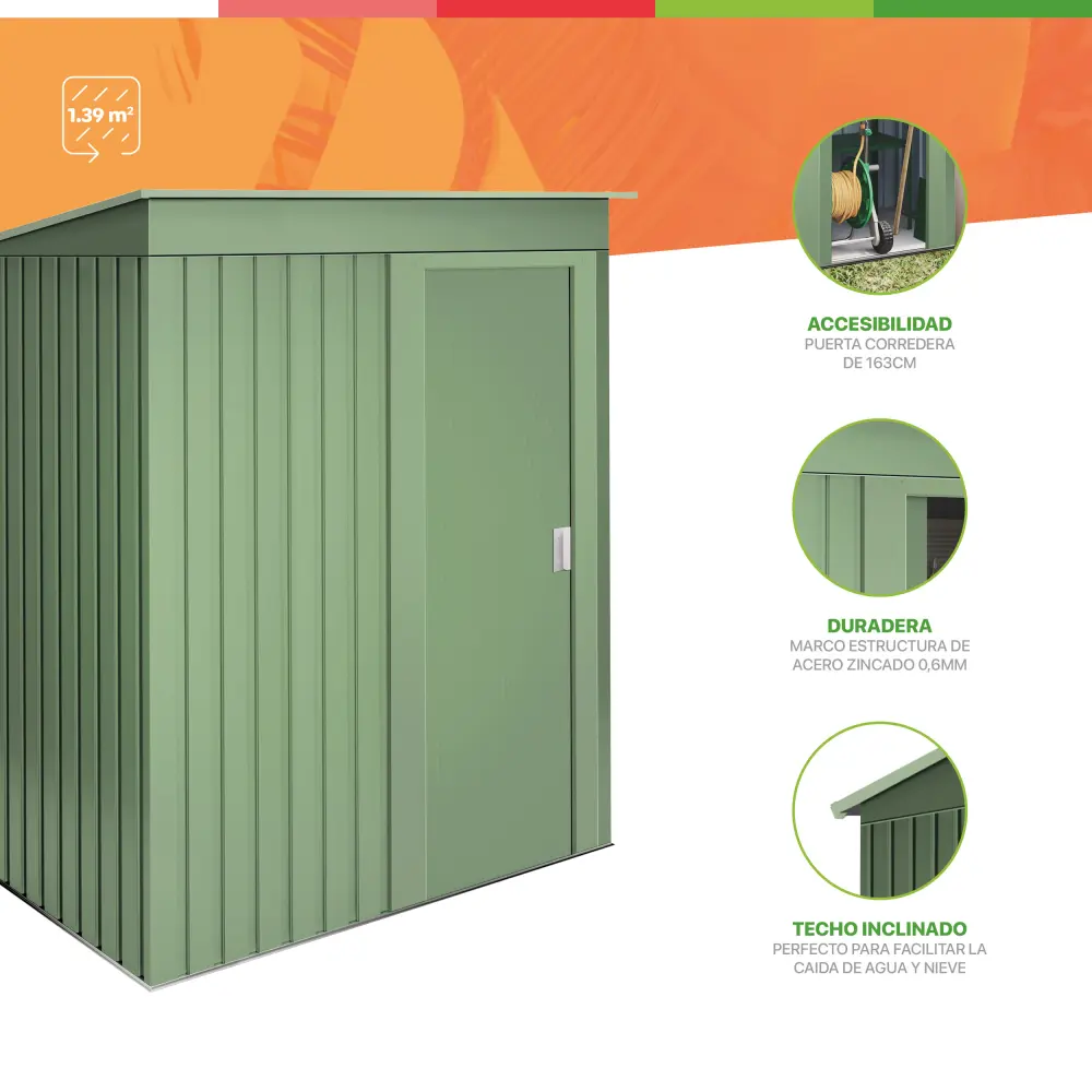 Armario metálico jardín 1.39m² Wasabi puerta corredera anticorrosión ✔ Placa de protección incluida para preservar la pintura de la puerta ✔ Acabado en varios colores para personalizar tu entrada 🛒 Elige el picaporte perfecto para tu puerta