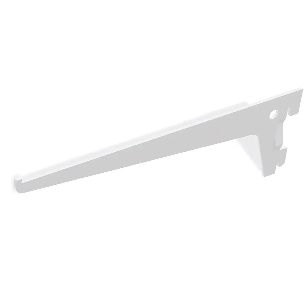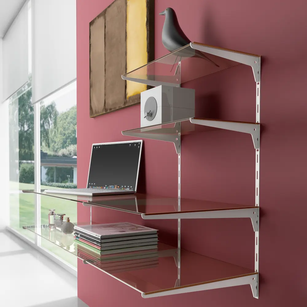 Están diseñados para ser utilizados junto con los perfiles cremallera de ranura simple con paso 50 mm para la instalación de estantes de madera o cristal.