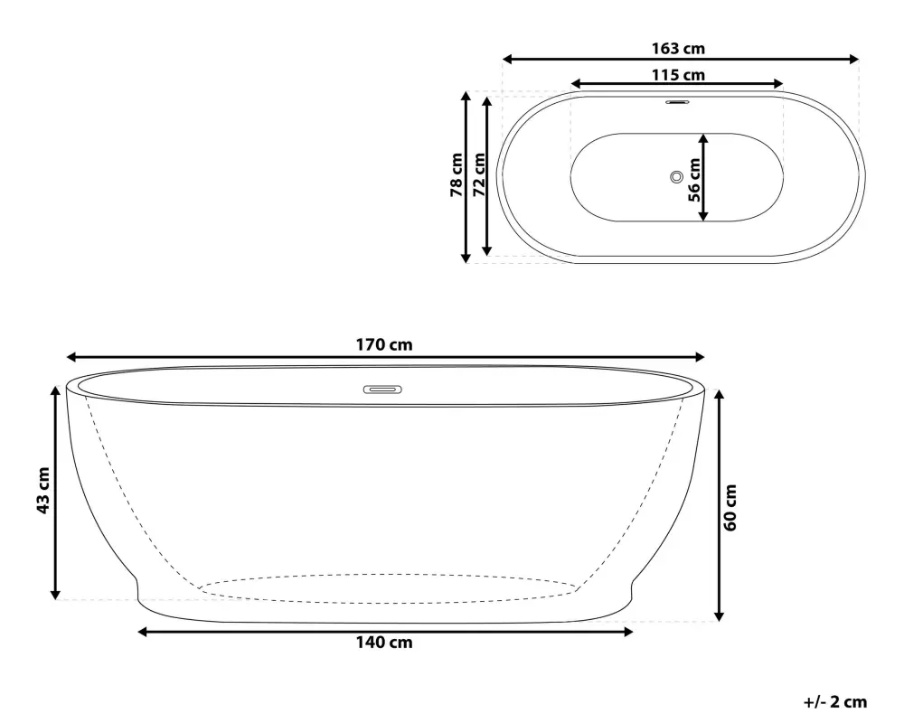Premiumsa bañera independiente. Esta bañera independiente fusiona bien en cualquier interior minimalista o moderno. Está fabricada a partir de acrílico sanitario de alta calidad. Es resistente a los golpes y arañazos. Incluye un desagüe de seguridad situado en el sector central de la bañera. Detalles: Tipo de Producto: Bañera independiente Estilo: Contemporáneo Tono: Blanco Tipo de material: Fibra de vidrio Tela fundamental: Acrílico Forma: Oval Acabado: Brillante Volumen: 276 Talla: Ancho: 78 cm Talla internas: 115x56x43 Longitud: 170 cm Altura: 60 cm Masa: 50 kg Volumen de peso: 300 kg La oferta incluye: 1 x Tubo de drenaje, 1 x Bañera, 1 x Sistema antidesbordamiento, No incluye: accesorios Beneficios: Sistema de drenaje con control de antidesbordamiento, Duradero y resistente a los golpes, Apariencia elegante, Superior, Muy sencillo de conservar Información de montaje: Requiere instalación. 45-60 min.Especificaciones