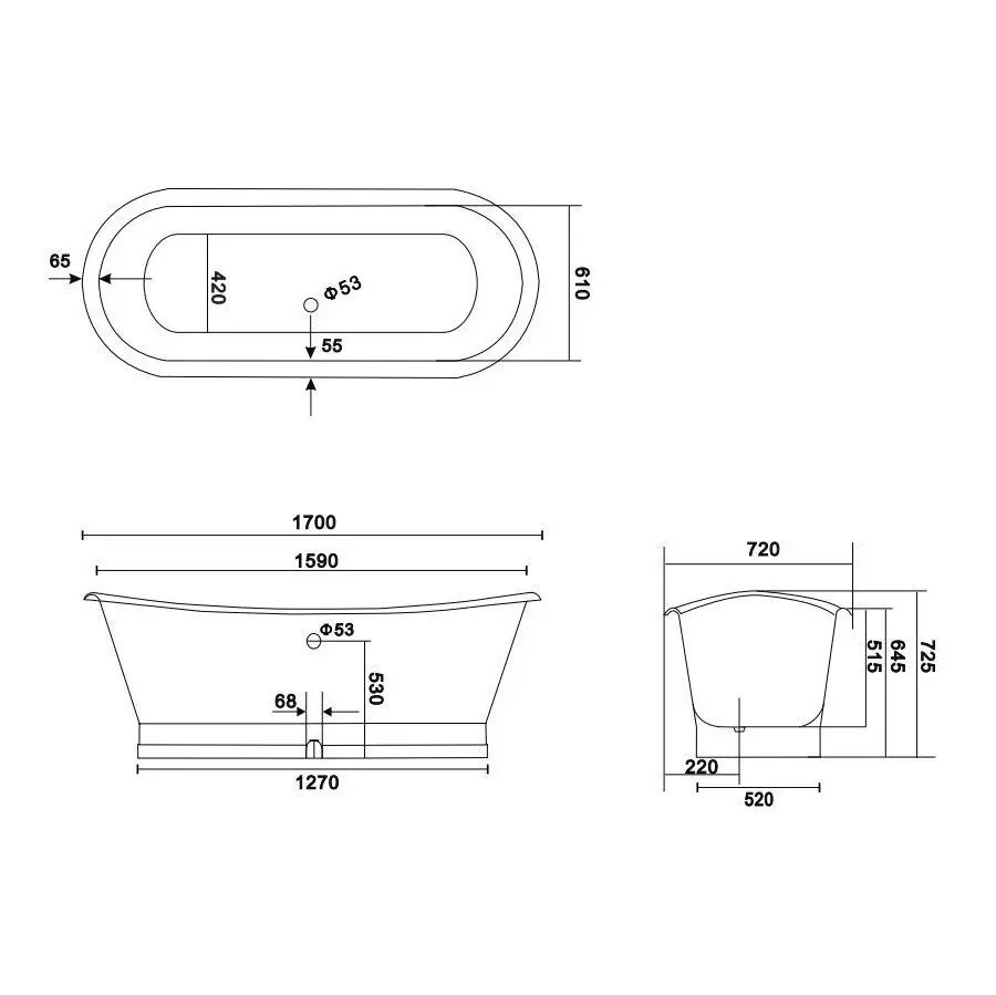 Medidas: longitud 1700 mm x anchura 720 mm x altura 725 mm
