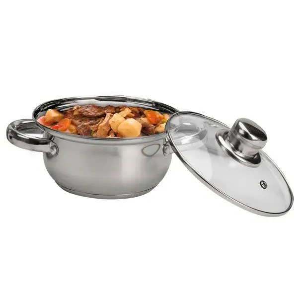 Completo set de cocina fabricado en acero inoxidable con 4 piezas, un cazo, dos cacerolas medianas y una más vasto. El juego es válido para cocinas de gas, electricidad, cerámica e inducción. Además, tiene la ventaja de que no tendrás que lavarlo a mano, puedes meter todos los componentes en el lavavajillas.