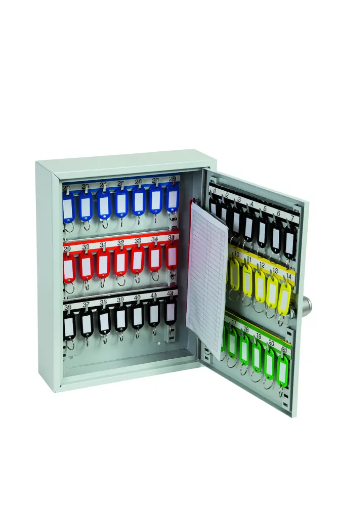 Los Armarios de Llaves Grado profesionales PHOENIX son armarios de llaves de alta calidad que van desde 42 ganchos hasta unidades de 600 ganchos.NÚMERO DE GANCHOS PARA LLAVES – 42.CERRADURA – Equipado con una cerradura electrónica de alta calidad, programable con un código de 4 dígitos que el usuario puede alterar sencillomente cuando sea necesario.CARACTERÍSTICAS ESPECIALES – Cada unidad llega con barras de ganchos ajustables y etiquetas numéricas para ajustarse.FIJACIÓN – Los armarios tienen orificios de fijación perforados para montaje en pared y tornillos suministrados.ACABADO – Acabado con una capa de polvo duradera y de alta calidad.Especificaciones