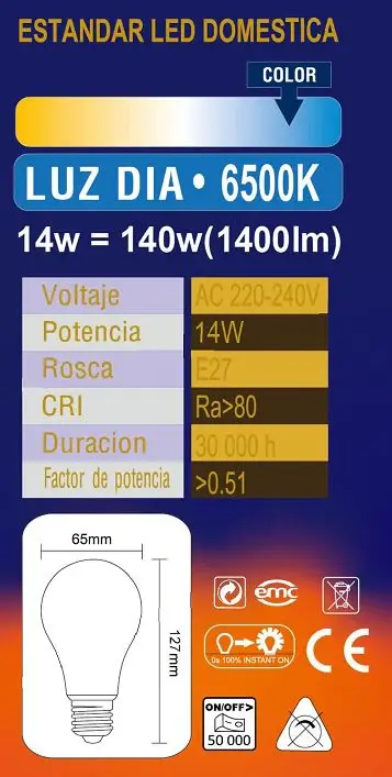 BOMBILLA LED A60 6500K E-27 ★ Alta Calidad Garantizada ★ Garantía de devolución de 30 días → Sin sorpresas en el precio