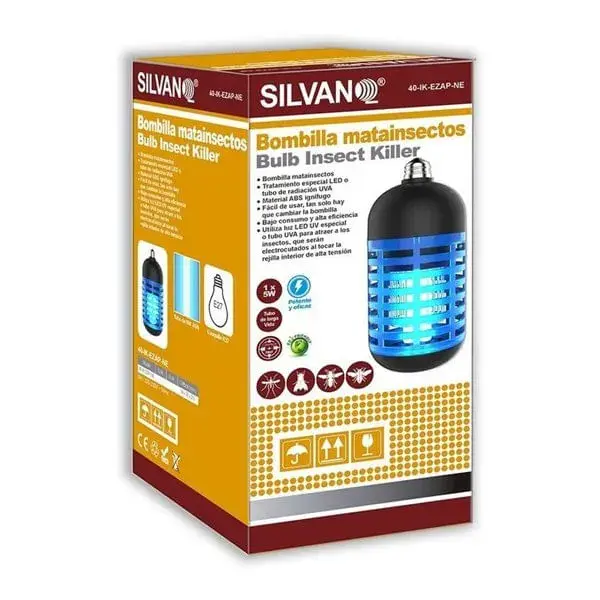 Cuenta con una estructura exterior de plástico ABS resistente al fuego y con un tubo de larga duración, de 5 W potencia y con tratamiento único de radiación UVA. Gracias al casquillo normalizado E27 que esta bombilla incorpora permite su colocación de forma sencillo y también su ajuste perfecto al portalámparas con el fin de que pueda actuar de manera más segura y estable contra los distintos insectos.