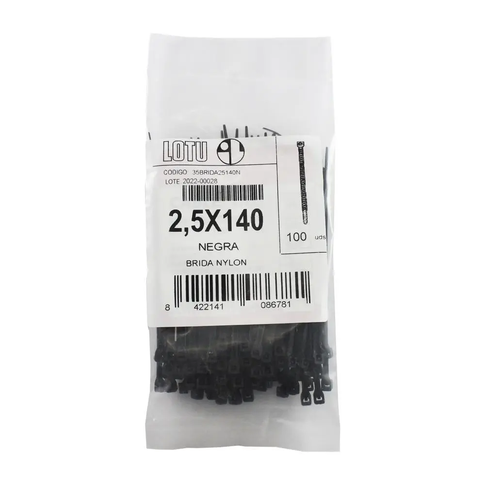Brida negra nylon 2.5×140 b-100brida negra nylon 2.5×140 b-100brida negra nylon 2.5×140 b-100brida negra nylon 2.5×140 b-100Especificaciones