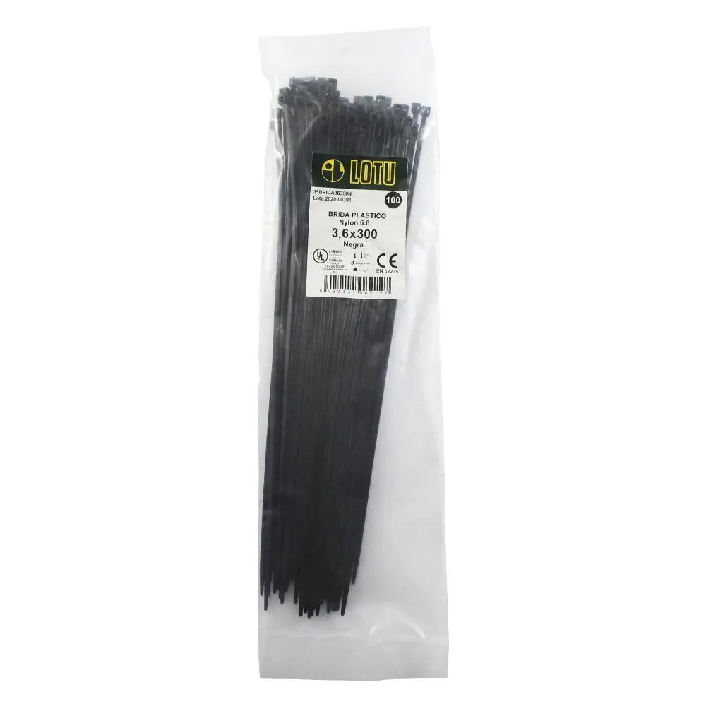 Brida negra nylon 3.6×300 b-100brida negra nylon 3.6×300 b-100brida negra nylon 3.6×300 b-100brida negra nylon 3.6×300 b-100Especificaciones