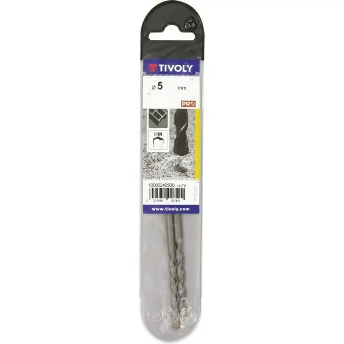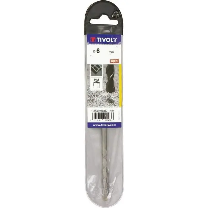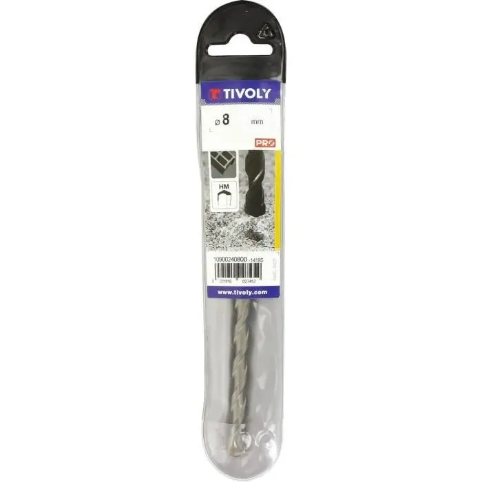 TIVOLY Broca extra para hormigón. Su geometría y su inserto de carburo soldado a alta temperatura le confieren una gran resistencia y versatilidad. Diámetro: 8 mm – Longitud: 120 mm. Úselo para perforar en concreto y ladrillo.Especificaciones