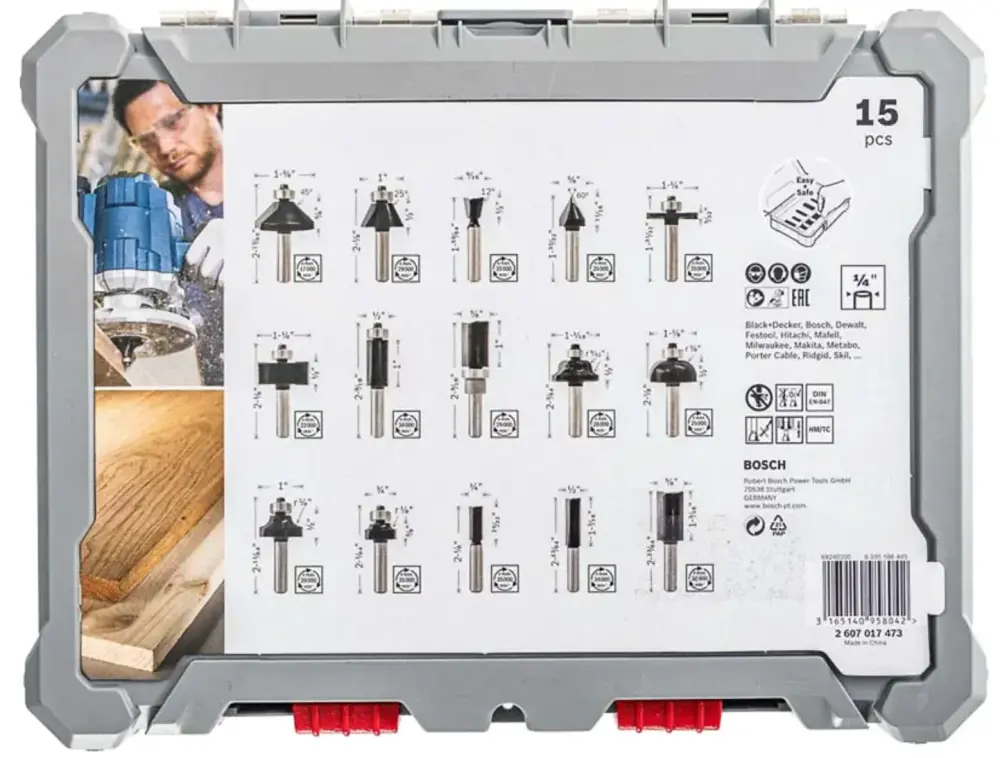 Fresas de recorte al ras, Broca de patrón al ras, Broca de ensamble a cola, Punta de biselado, Punta de bicelado, Broca para ranuras en V, Cortador de ranuras, Broca para machihembrar, Broca Roman ogee, Broca para ranura curvada, Fresa para redondear, cortador de broca recta.