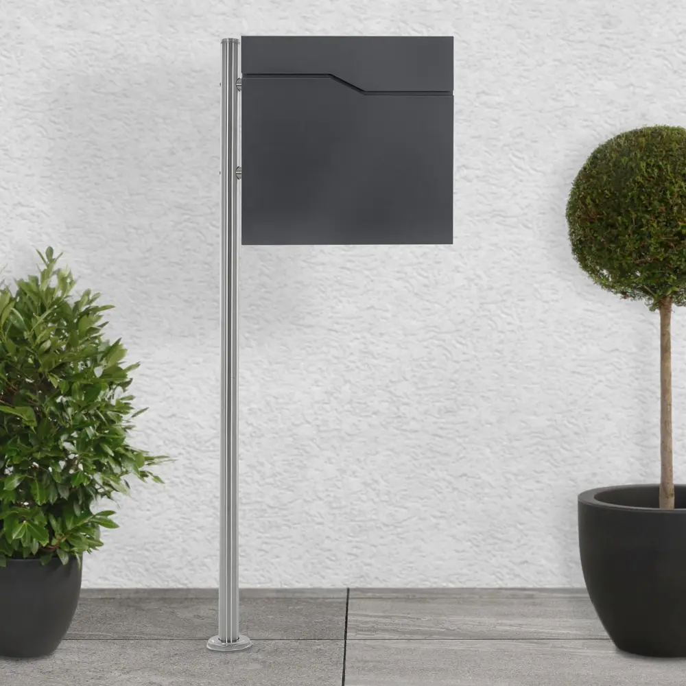 Este buzón no sólo impresiona por sus funciones, sino también por su frontal único. El buzón está fabricado en acero inoxidable galvanizado con recubrimiento en polvo y es resistente a la intemperie.