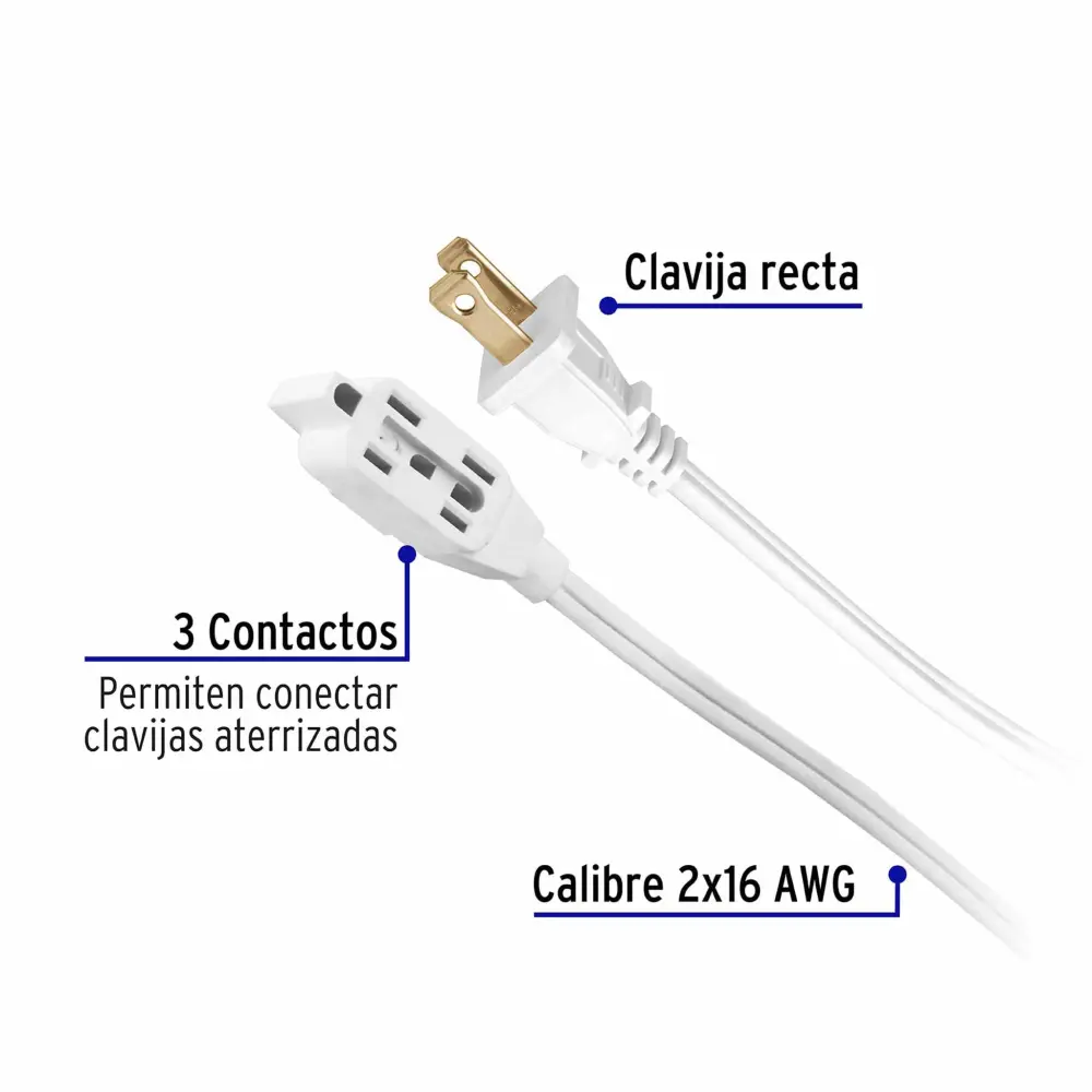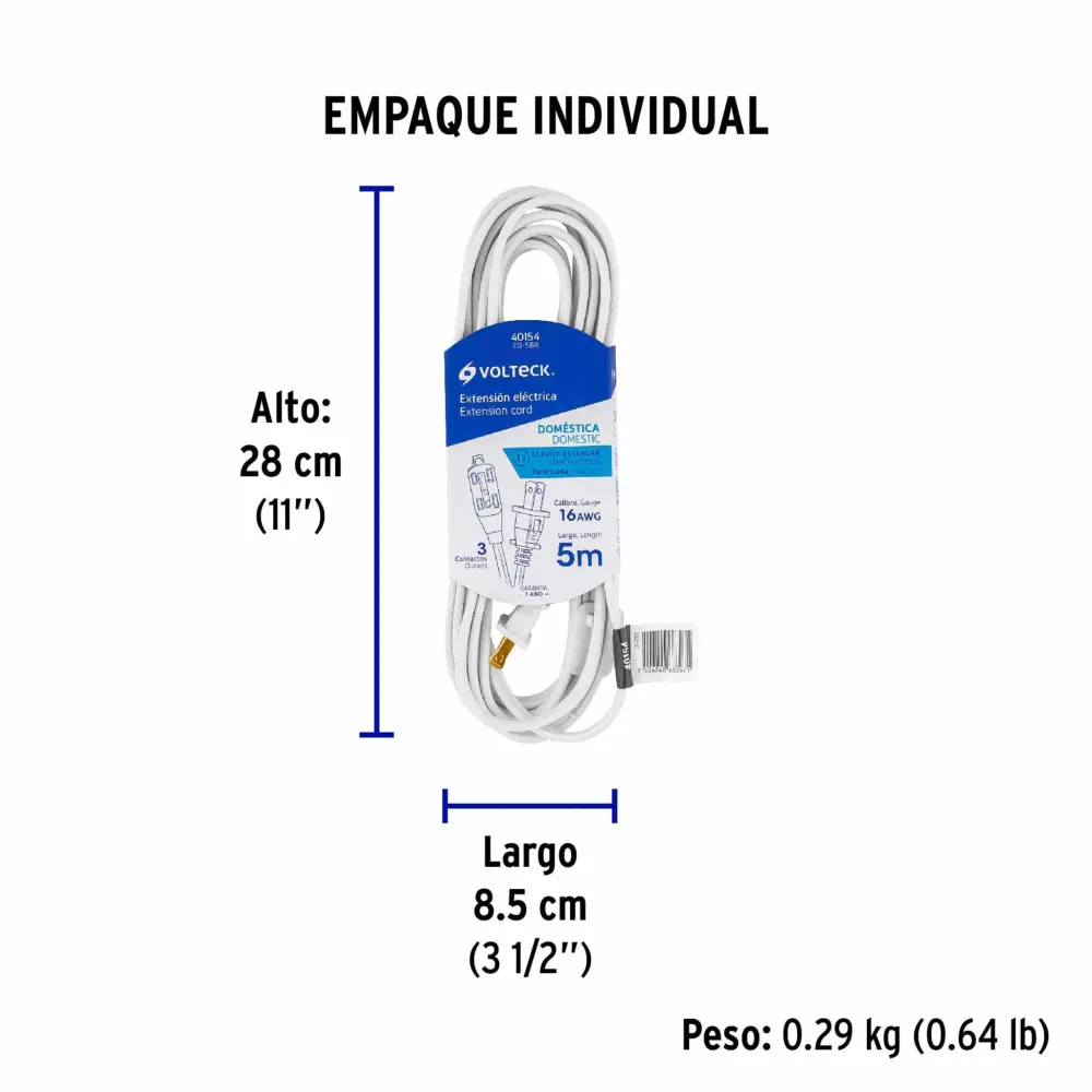 Extensión eléctrica doméstica 5 m clavija recta, blanca