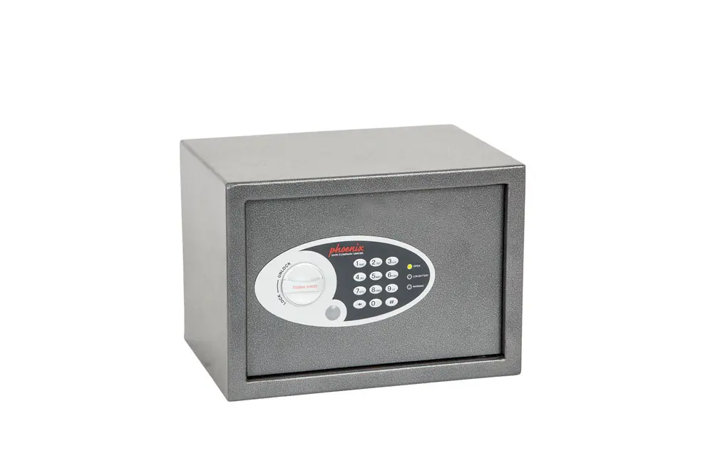 EL PHOENIX DIONE es excelente para uso en hoteles, residencias o negocios, para el almacenamiento de tabletas, dinero en efectivo y objetos de valor.PROTECCIÓN DE SEGURIDAD – Recomendado para almacenar 1.500 euros en efectivo o 15.000 euros en objetos de valor.CERRADURA – Equipado con una cerradura electrónica avanzada y sencillo de utilizar, con un sistema de bloqueo de solenoide de alta seguridad anti-manipulación o anti-golpe. Para mayor tranquilidad, estas cajas fuertes están equipadas con una función de anulación por llave y una función de código maestro.ILUMINACIÓN – Equipado con una luz interior LED brillante para que el contenido pueda verse sencillomente, incluso en los armarios más oscuros.FIJACIÓN – Preparado para su montaje en el suelo o en la pared (se suministran pernos adecuados para paredes de ladrillo o suelos de hormigón).OPCIONAL – Configuración de carga interna USB y enchufe. Llame para más detalles.COLOR – Acabado en una pintura Metálica Grafito de alta calidad resiste