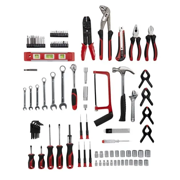 Uso juegos de 100 herramientas para tareas diversas de bricolaje en el hogar.