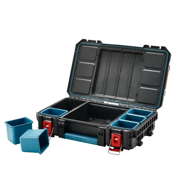 Los seis contenedores extraíbles y los dos separadores permiten un acceso rápido al contenido al mismo tiempo que proporcionan un amplio espacio para accesorios de herramientas de tamaño pequeño y mediano.