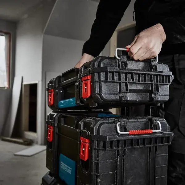 El sistema de almacenaje modular Erbauer Connecx te permite unir otros productos de la gama, como cajas de herramientas o cajas.Atributos y beneficios