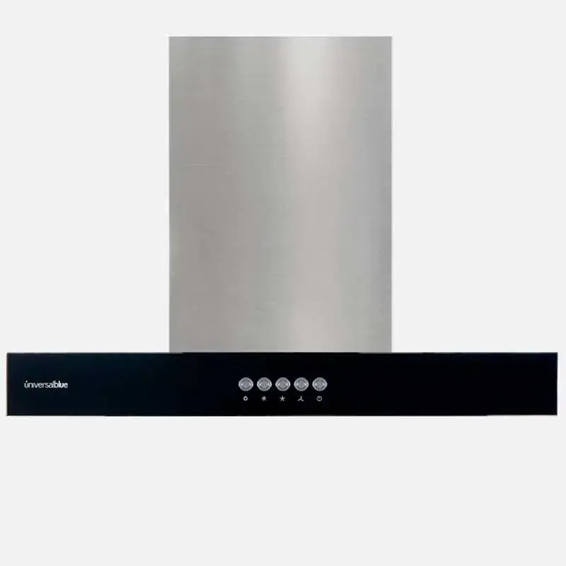 La campana decorativa en T modelo Kenia 4060 de la marca Universal Azul viene fabricada en acero inoxidable y cristal negro. Cuenta con una potencia de 150W y un poder de succión de 550m³/h. Podrás seleccionar entre sus 3 velocidades la que mejor se adapte en cada momento y gracias a su nivel sonoro de 66dB no resultará nada molesta durante su funcionamiento. Aparece con 2 filtros de aluminio que son extraíbles y lavables en lavavajillas.