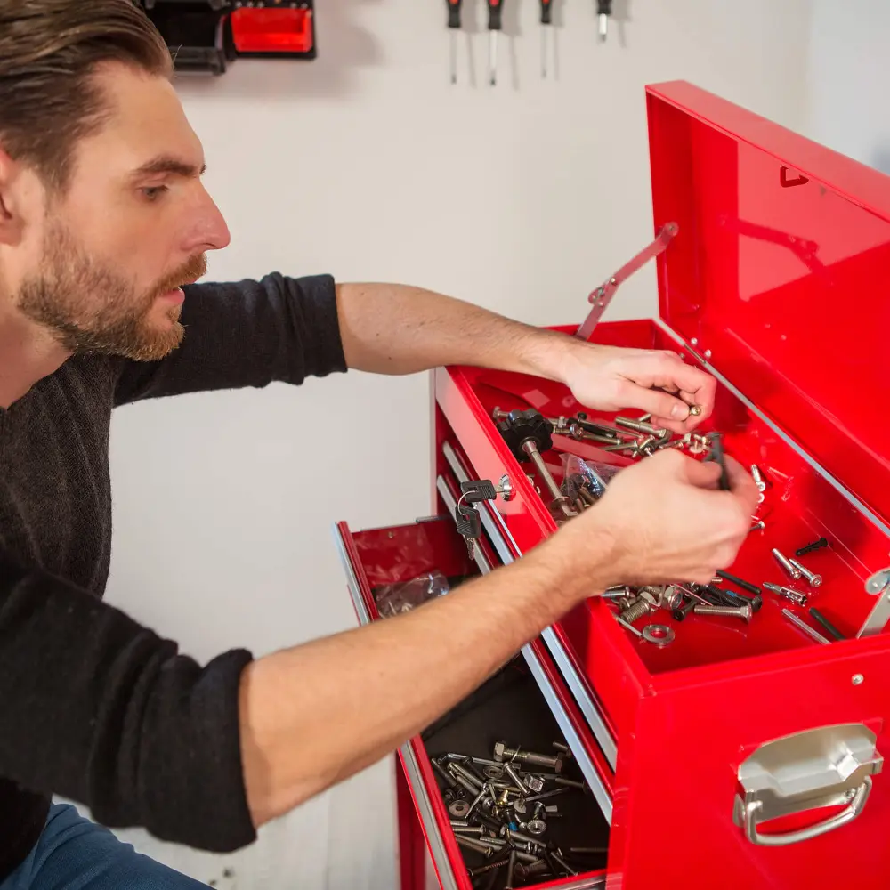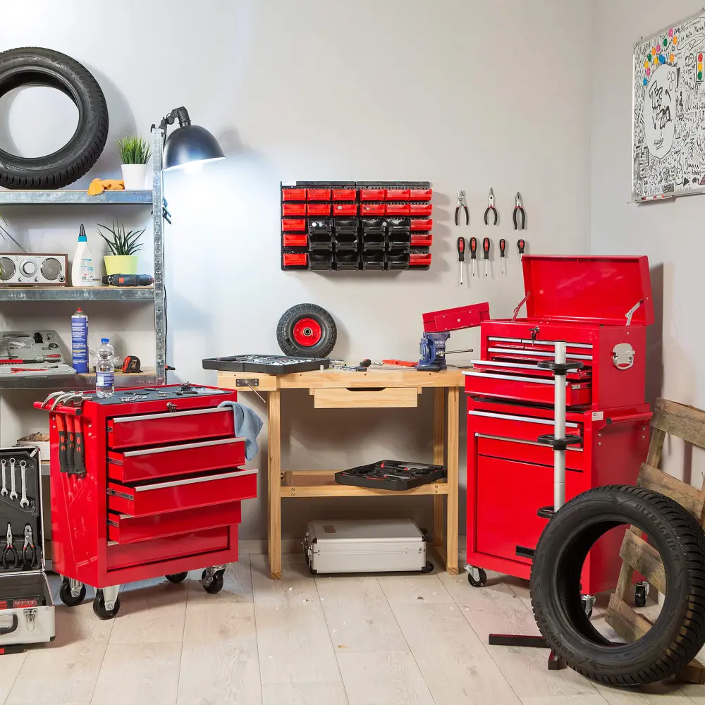 - 1 carrito de herramientas con cajón extraíble independiente y dos llaves