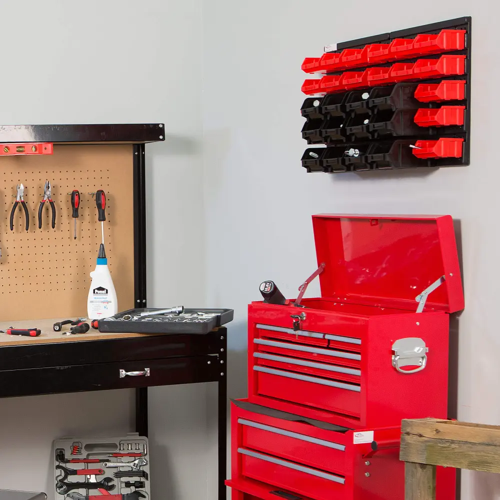 este carrito de herramientas de tectake destaca con un extra muy especial – tiene un práctico cajón extraíble con cerradura individual. Así tendrá todas sus herramientas a mano cuando las necesite. Para el taller de casa o su negocio, el carrito cumple con sus cajones deslizantes y la pieza extraíble con todos los criterios de un carrito para herramientas. Los cajones y la superficie tienen alfombrillas antideslizantes. Cuatro ruedas permiten moverlo sencillomente